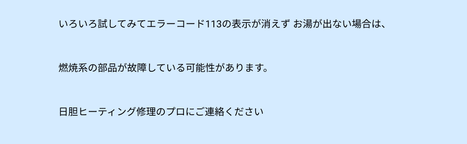 ブルーバックに給湯器のエラー113は点火不良のサイン?